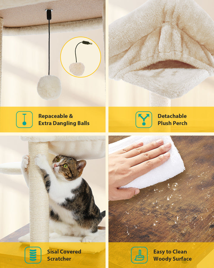 •Elegant Cat House: The cat tree includes a door with cute cat claw-shaped designs, allowing for interaction with your cat.